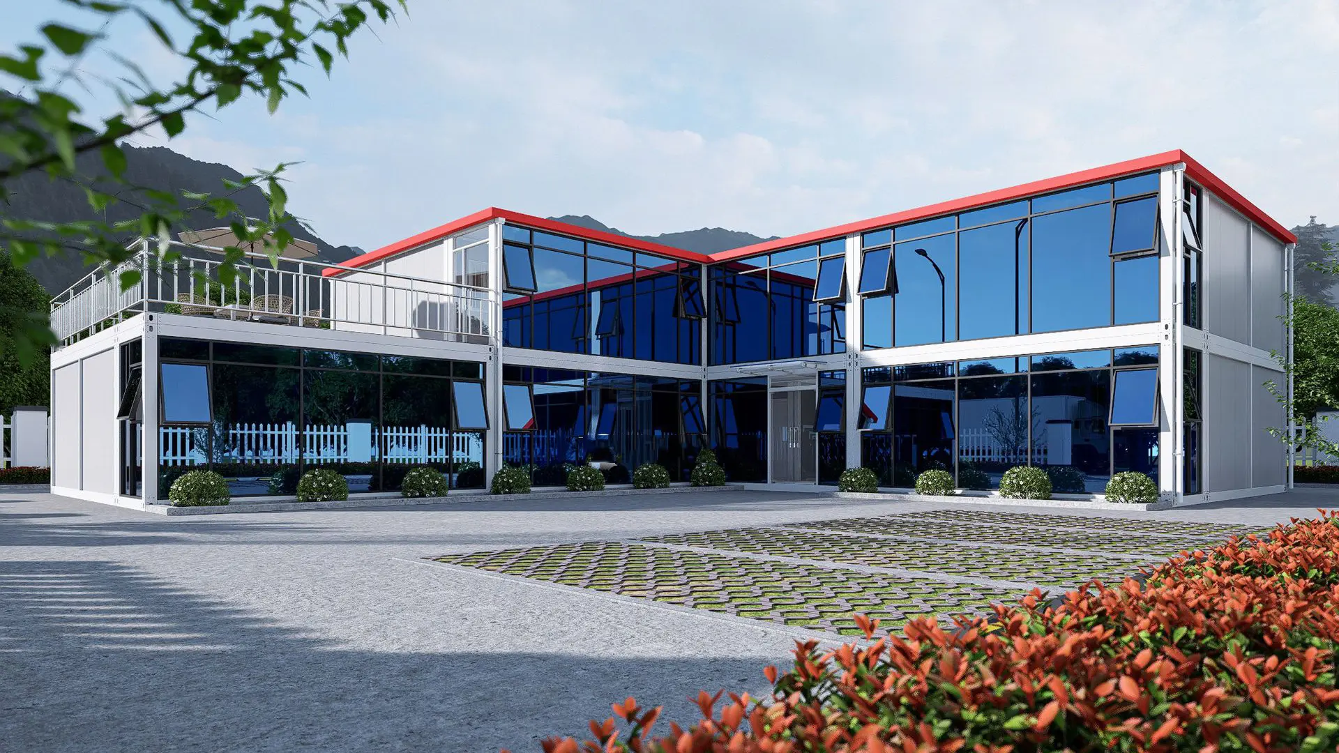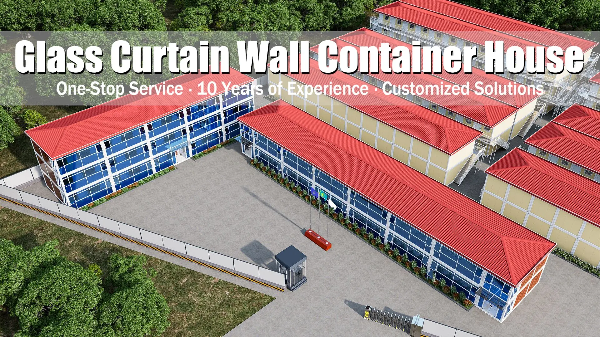 The dimensions of our glass curtain wall container houses can be customized to meet your specific needs. The standard unit size is 5.95m (L) x 3m (W) x 2.8m (H).