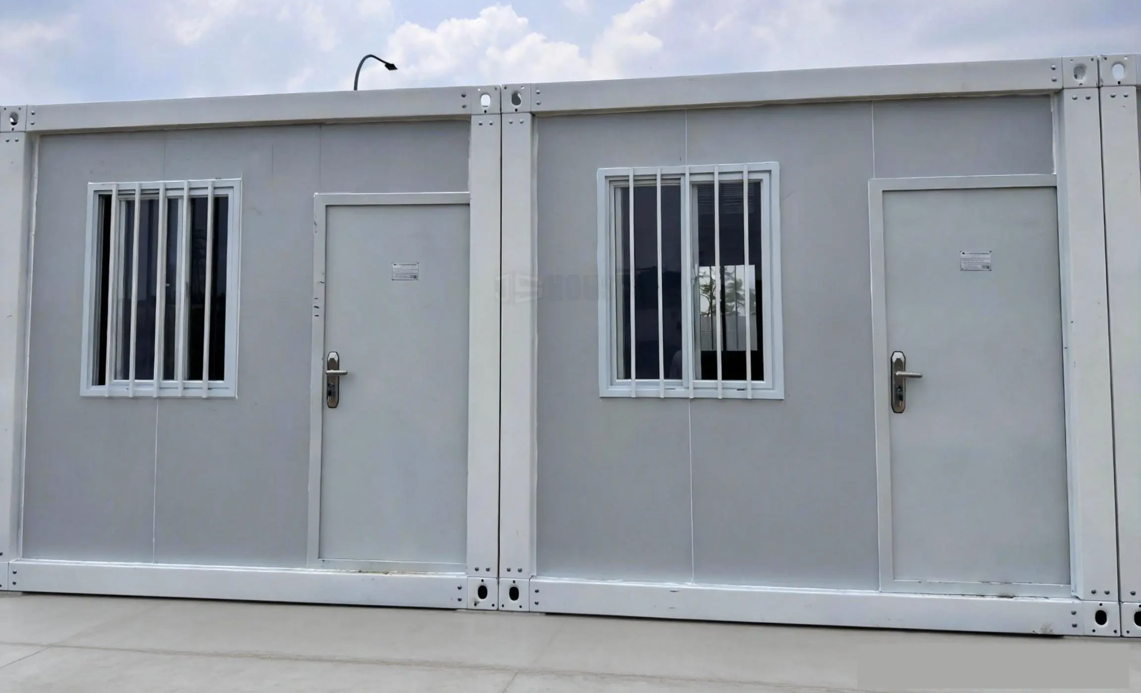 All-bolt connection system—no welding or crane required. Despite its larger size compared to flat pack containers, it takes up less space during transport.