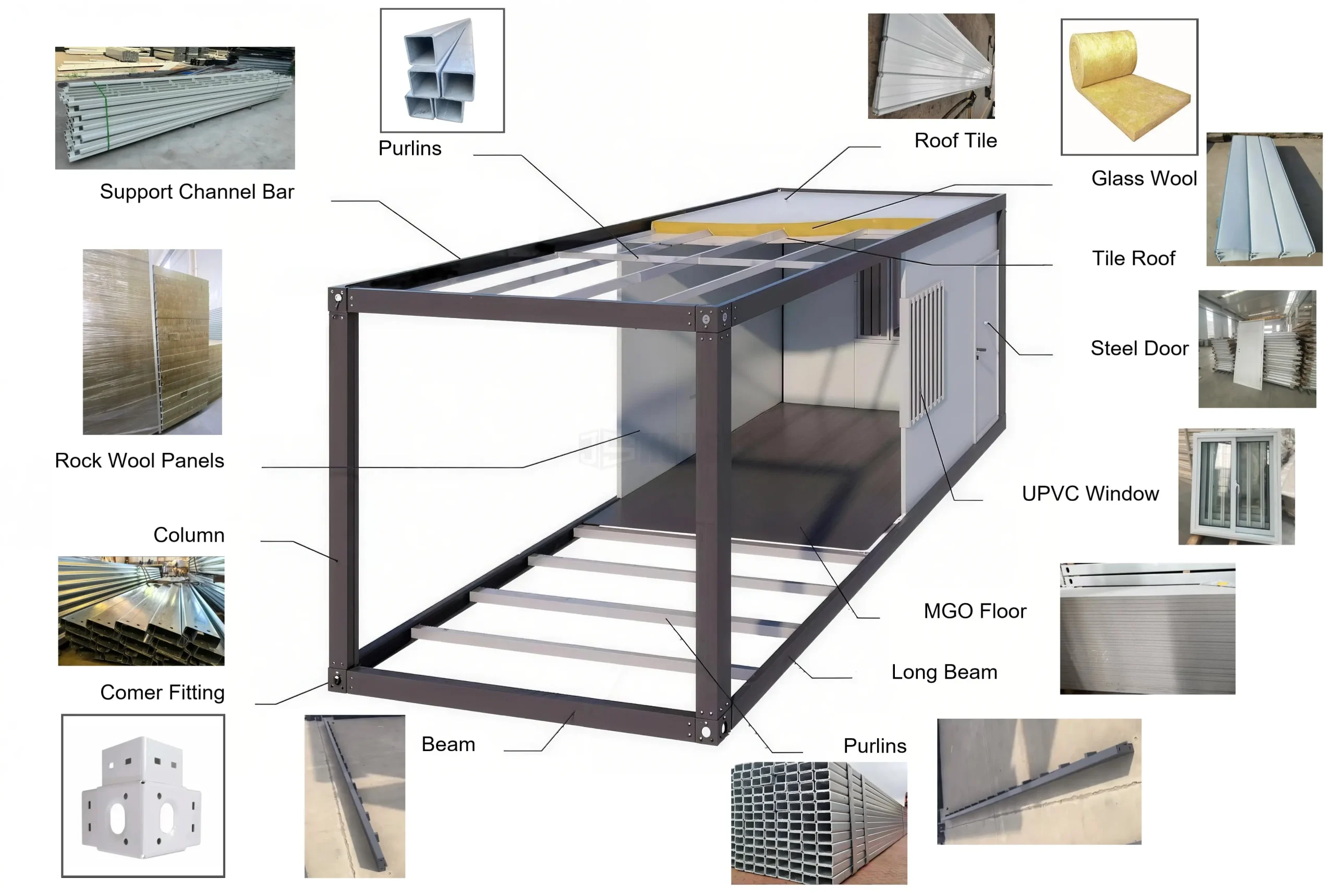 We offer three high-performance sandwich panel options tailored to your project’s specific needs: our Rock Wool Panels deliver industry-leading Grade A fire protection and exceptional cost-efficiency; our PU (Polyurethane) Panels provide the ultimate thermal insulation and 5-star waterproofing for extreme climates; and our PU-Sealed Rock Wool Panels offer a premium hybrid solution, combining fire resistance with PU-reinforced edges to prevent moisture ingress and enhance durability. Whether you prioritize safety, energy efficiency, or economic value, our panels ensure a secure and long-lasting environment for your container structure.