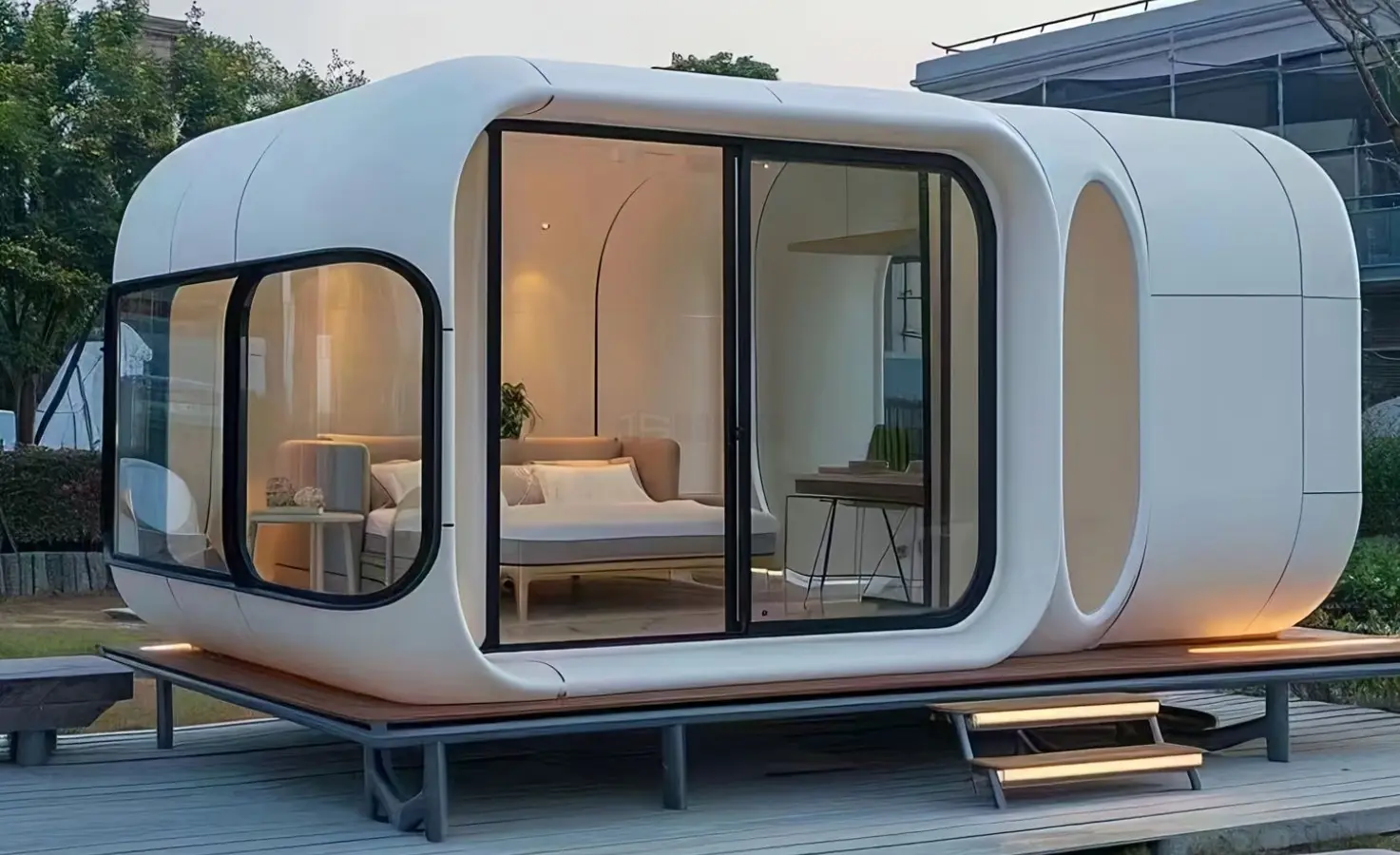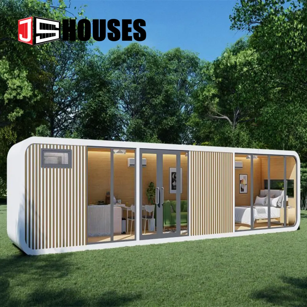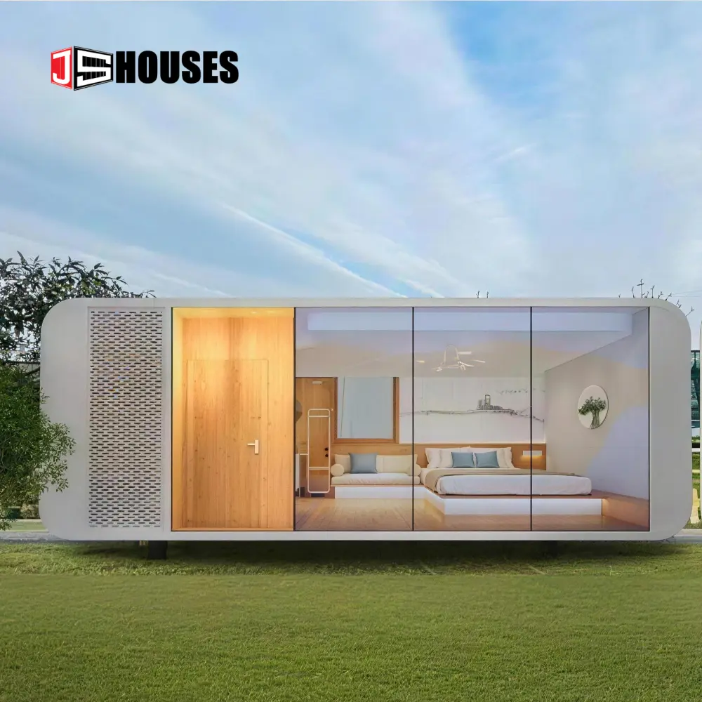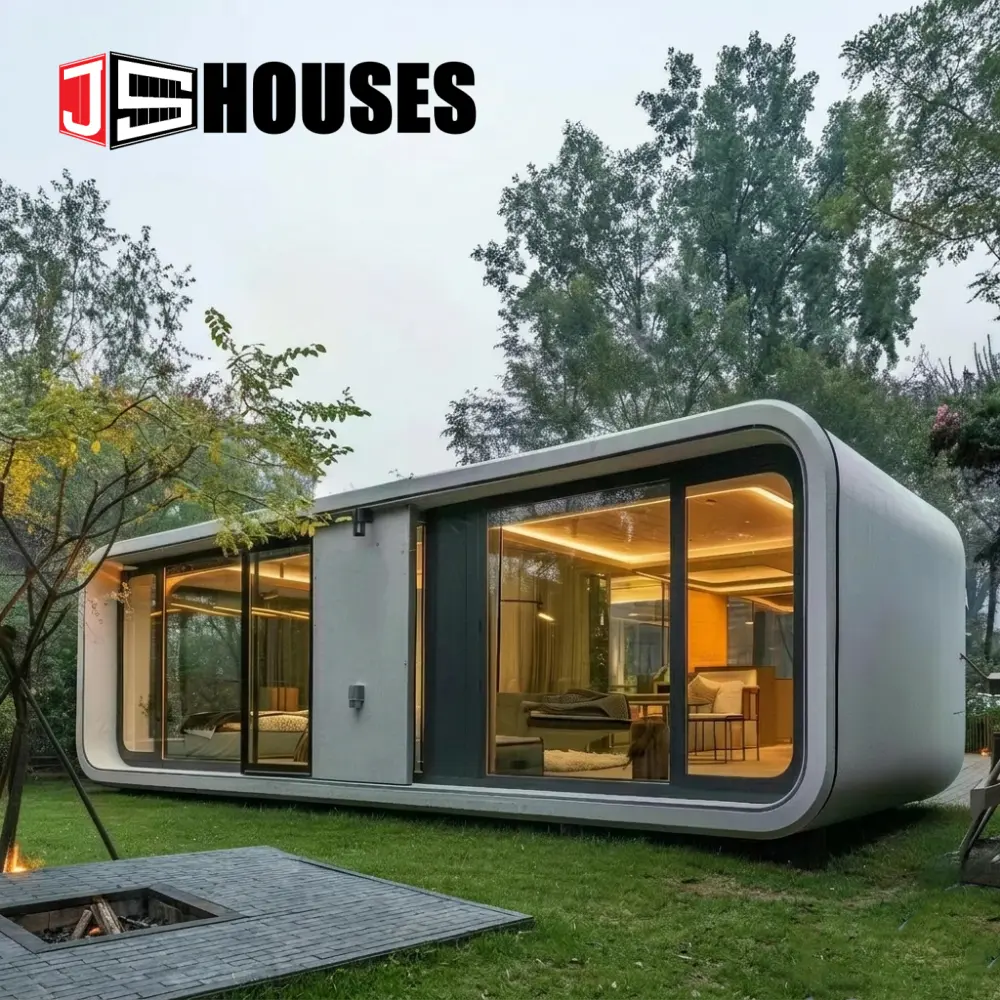 Js-Houses Apple Cabins represent the pinnacle of modular engineering—where iconic curved aesthetics meet aerospace-grade durability. Crafted with integrated aluminum alloy structures and expansive panoramic glazing, these cabins offer a sophisticated, tech-forward sanctuary that harmonizes with any landscape.